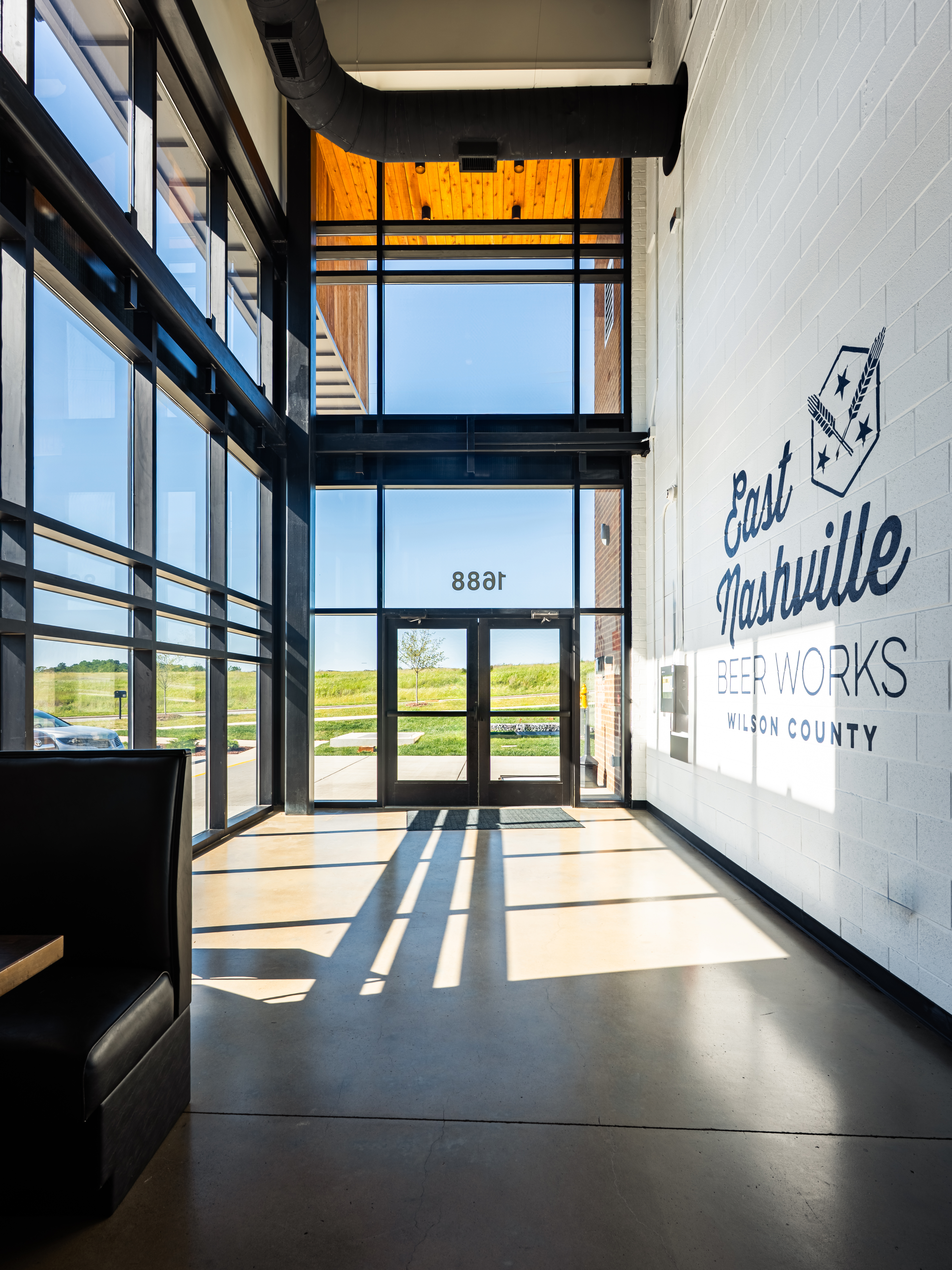 The East Nashville Beer Works, Wilson County project in Lebanon was designed to create a multifaceted community hub. Key program requirements included diverse gathering spaces, both public and private, alongside dedicated amenities like an on-site dog park and a large playground. Crucially, the design prepared for significant brewing expansion with ample height for future tanks and integrated in-house canning capabilities. The plan emphasizes seamless indoor-outdoor connection and incorporates a full commercial kitchen, all within a structure built to foster human connection and serve as a lasting community anchor in a growing suburban area.