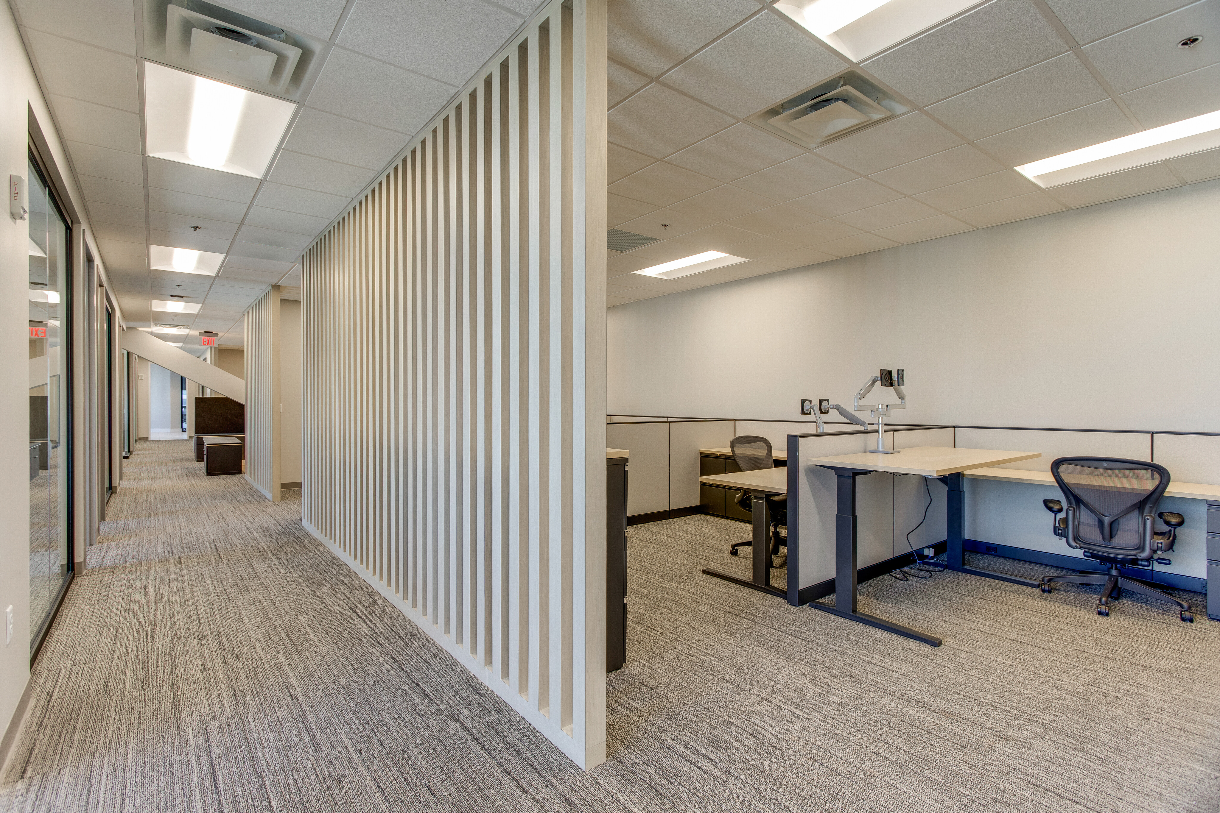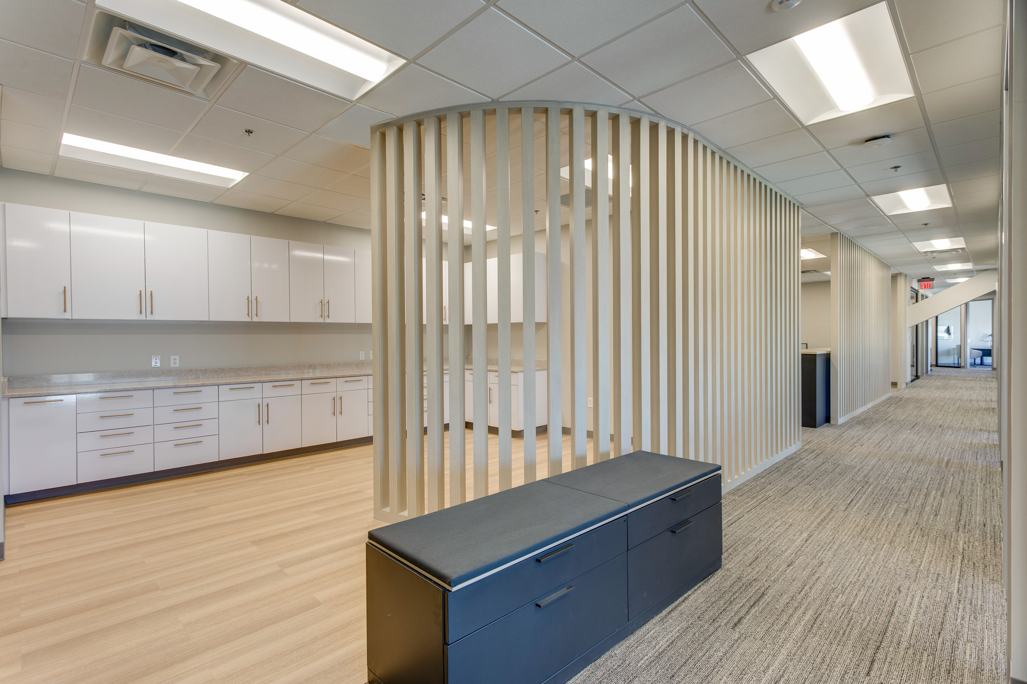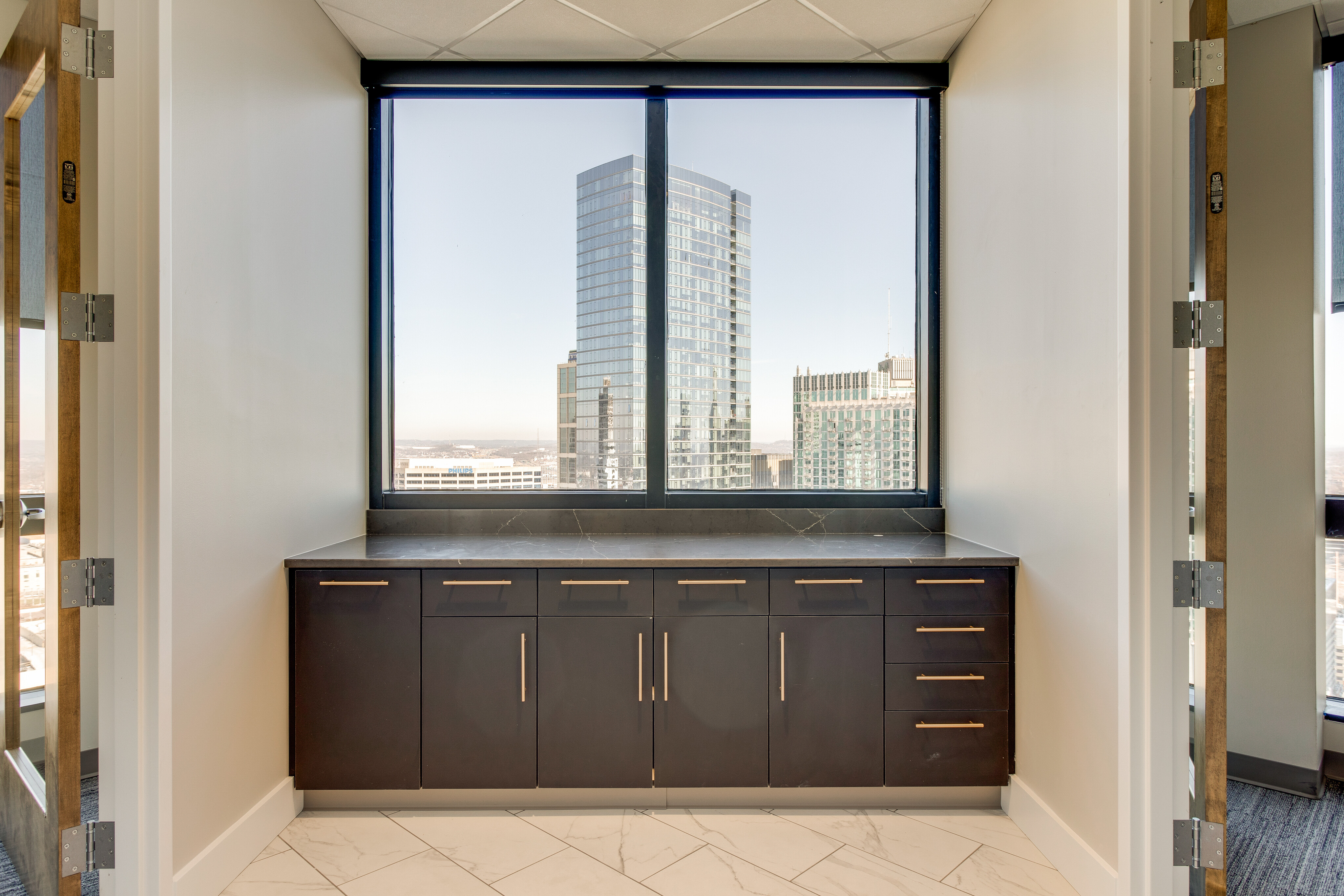 This corporate interiors buildout aimed to accommodate a large law firm in an existing suite, while also maintaining site lines to and emphasizing downtown Nashville. Daniels Chandler worked to divide space in creative ways to allow for optimal natural light and site lines, while still creating a sense of privacy. Daniels Chandler also worked with the client to assist in finish and furniture selections to reflect a modern office in an urban environment.